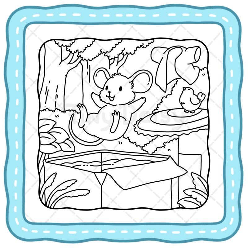 This tiny mouse coloring book blends everyday scenes with subtle fantasy elements.