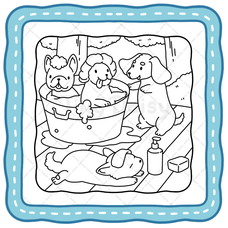 This dogs coloring book invites you into a peaceful countryside world filled with sunshine, fresh air, and playful puppies. Each illustration captures the charm of cottage life, making it a perfect cute dogs coloring book for relaxing evenings. Slow down, enjoy cozy farm moments, and experience the simple happiness of coloring adorable puppy adventures.