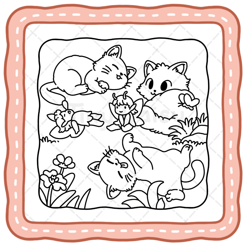 Welcome to Cat World, a heartwarming fantasy cat coloring book where playful kittens explore enchanted forests, befriend tiny fairies, and fly beside gentle dragons. This imaginative collection blends cozy charm with magical adventures.