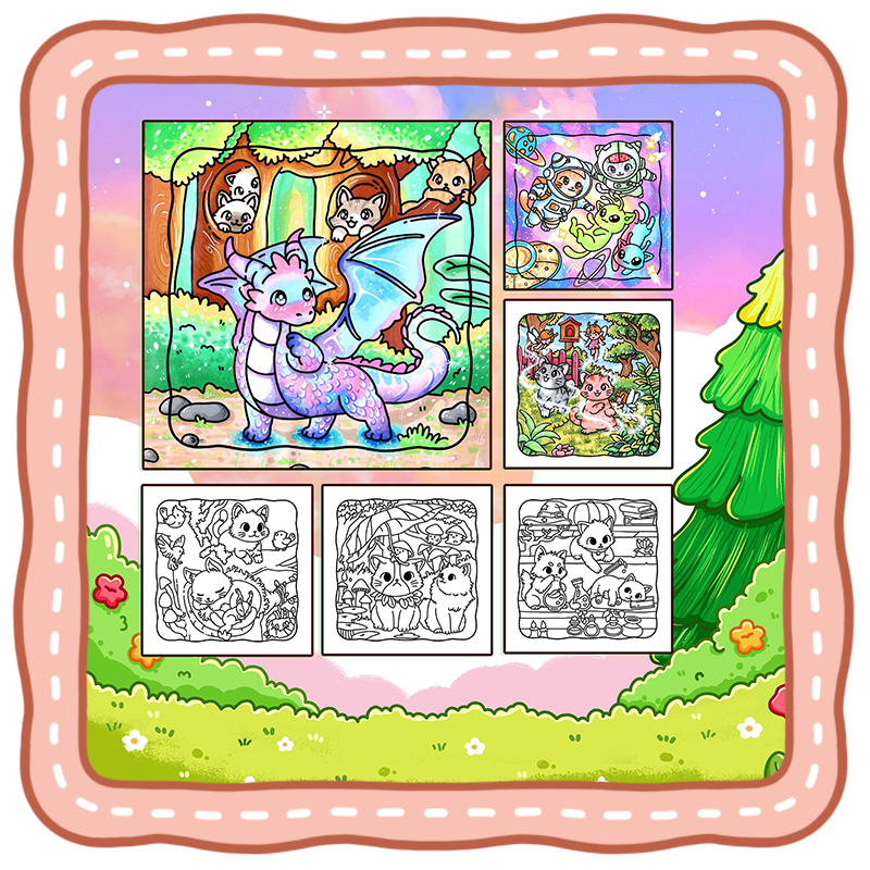 This fantasy cat coloring book is more than just a coloring activity. It invites you into a magical world where dragons, fairies, and playful kittens live together in harmony. Each illustration encourages mindfulness and creative storytelling.