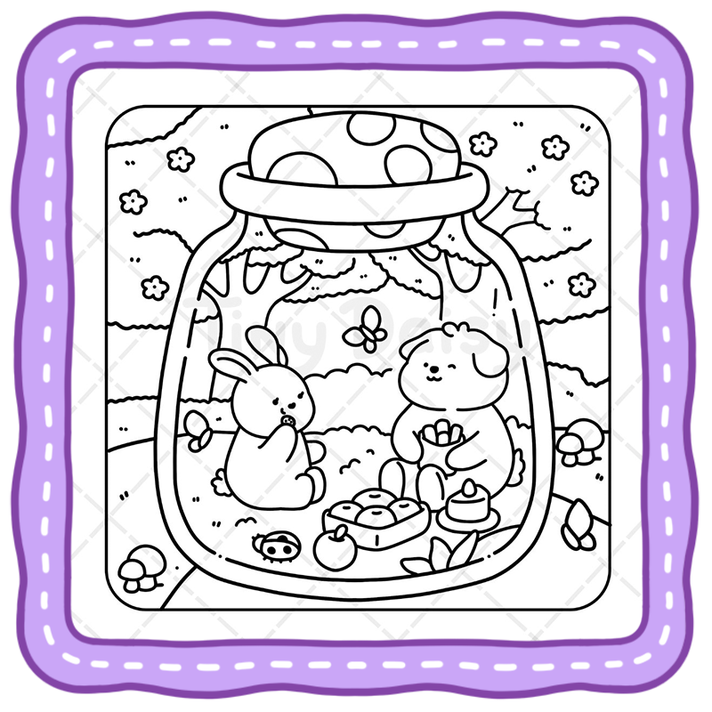 Unlike traditional designs, this magical world coloring book focuses on small, self-contained fantasy scenes. From stargazing foxes to rabbits baking in miniature kitchens, each jar captures a magical story waiting for your colors.