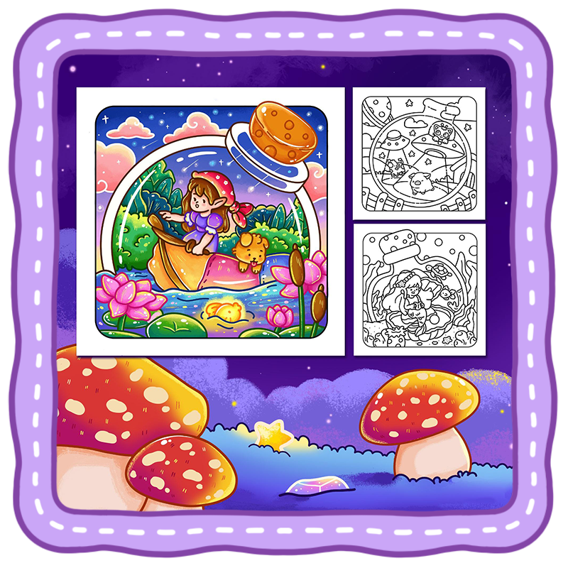 Inspired by a whimsical pocket world coloring book for adults, Jar in Life blends fantasy and comfort into a relaxing artistic escape.
