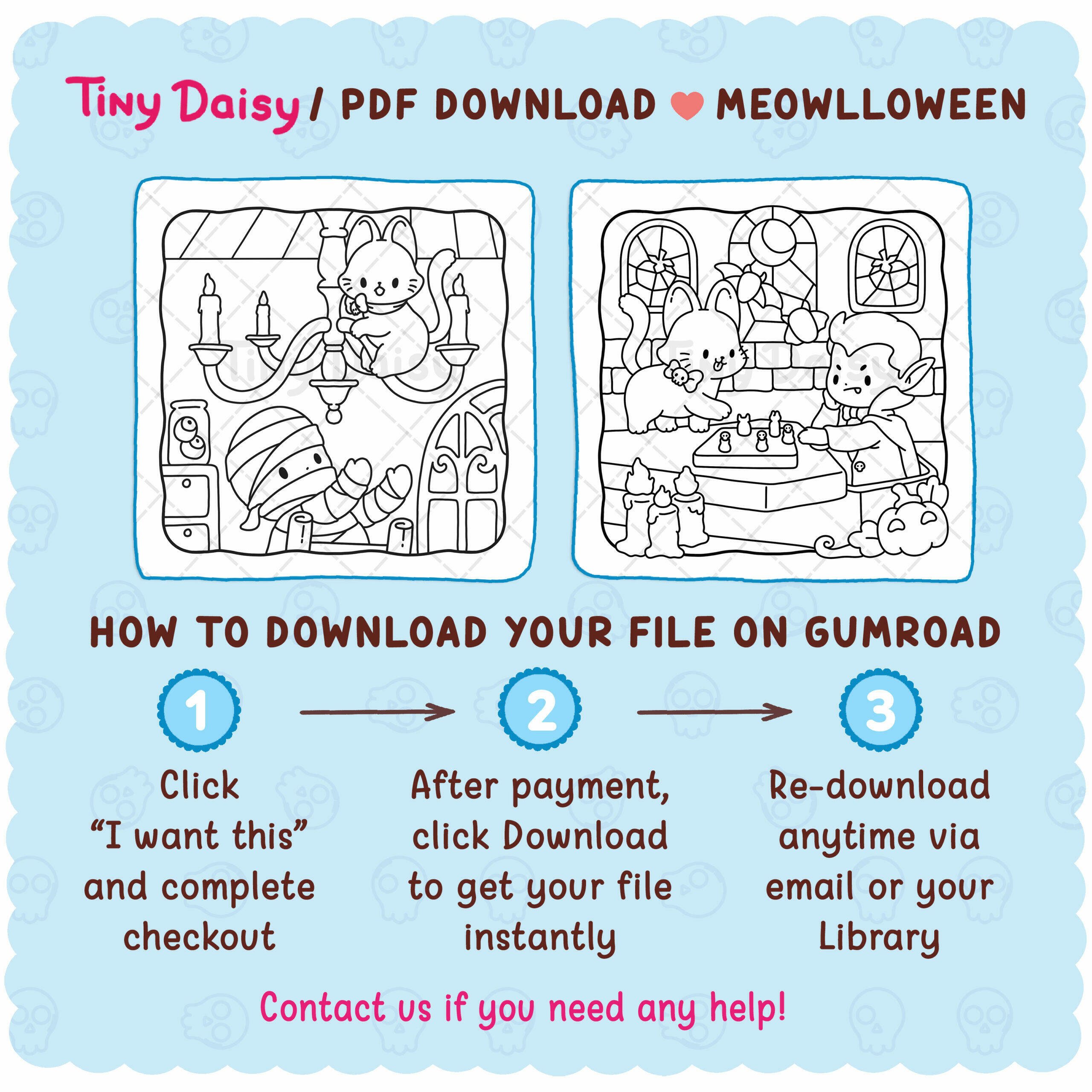 Once purchased, you can immediately download your Meowlloween digital coloring pages and start printing.