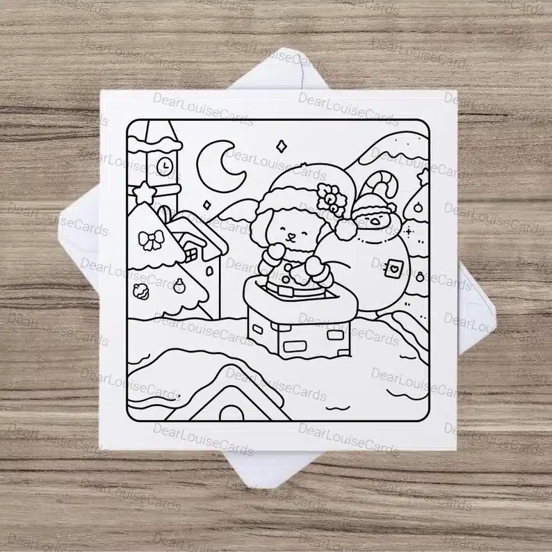 🎅 Santa’s Helper Rooftop Christmas DIY Colouring Card