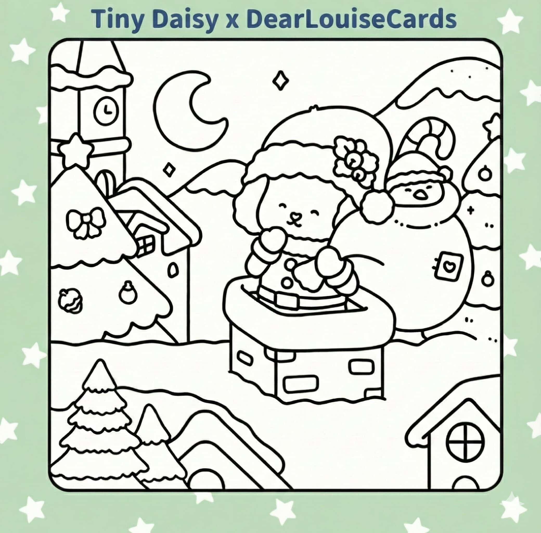 The design reflects the adorable, relaxing style that Tiny Daisy Colouring is known for — soft, cosy, and full of festive charm.