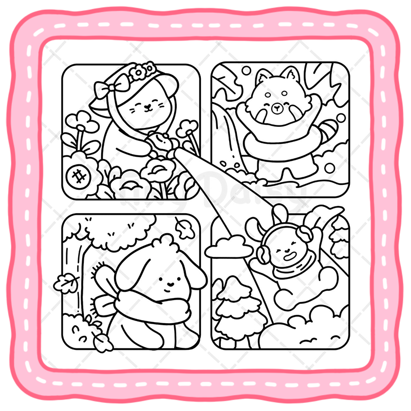 Welcome to the heartwarming world of this tiny buddies coloring book, where adorable fuzzy friends enjoy simple daily joys and magical little moments throughout the year.
